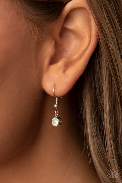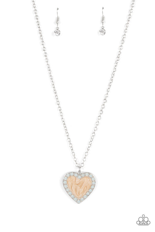 Bordered in a row of opal white rhinestones, a silver frame is painted in a glossy brown finish at the bottom of a silver chain for a flirtatious finish. Features an adjustable clasp closure.