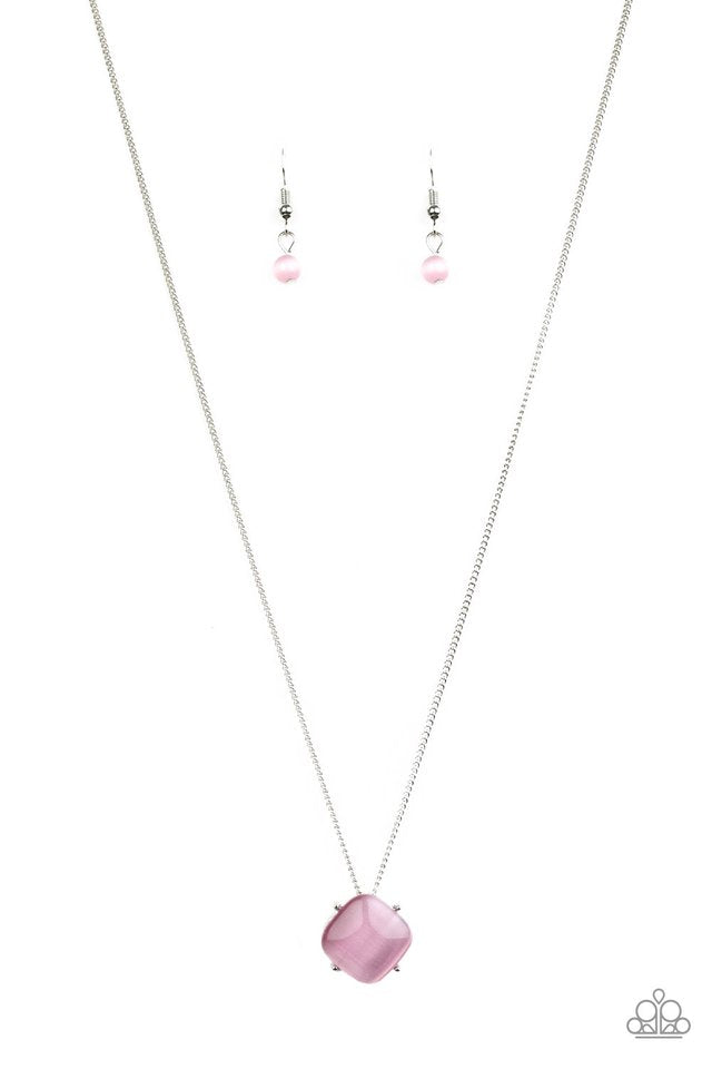 Chiseled into a tranquil square, a glowing pink moonstone pendant swings below the collar for a colorfully refined look. Features an adjustable clasp closure. Sold as one individual necklace.